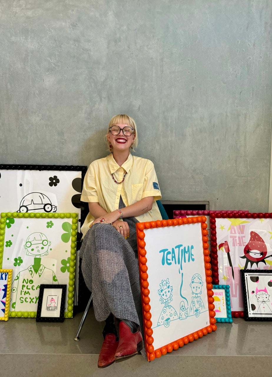 My inspiration for STRWBRY_WRLD came from a song my mama used to sing me that was about a strawberry girl with a strawberry tumtum in a strawberry world. It’s a core memory I have of her and I dancing around the living room year after year. I would doodle little characters of strawberry people and other fruity friends. Eventually they began to take over my notebooks, text books and pretty much any other surface I could find.